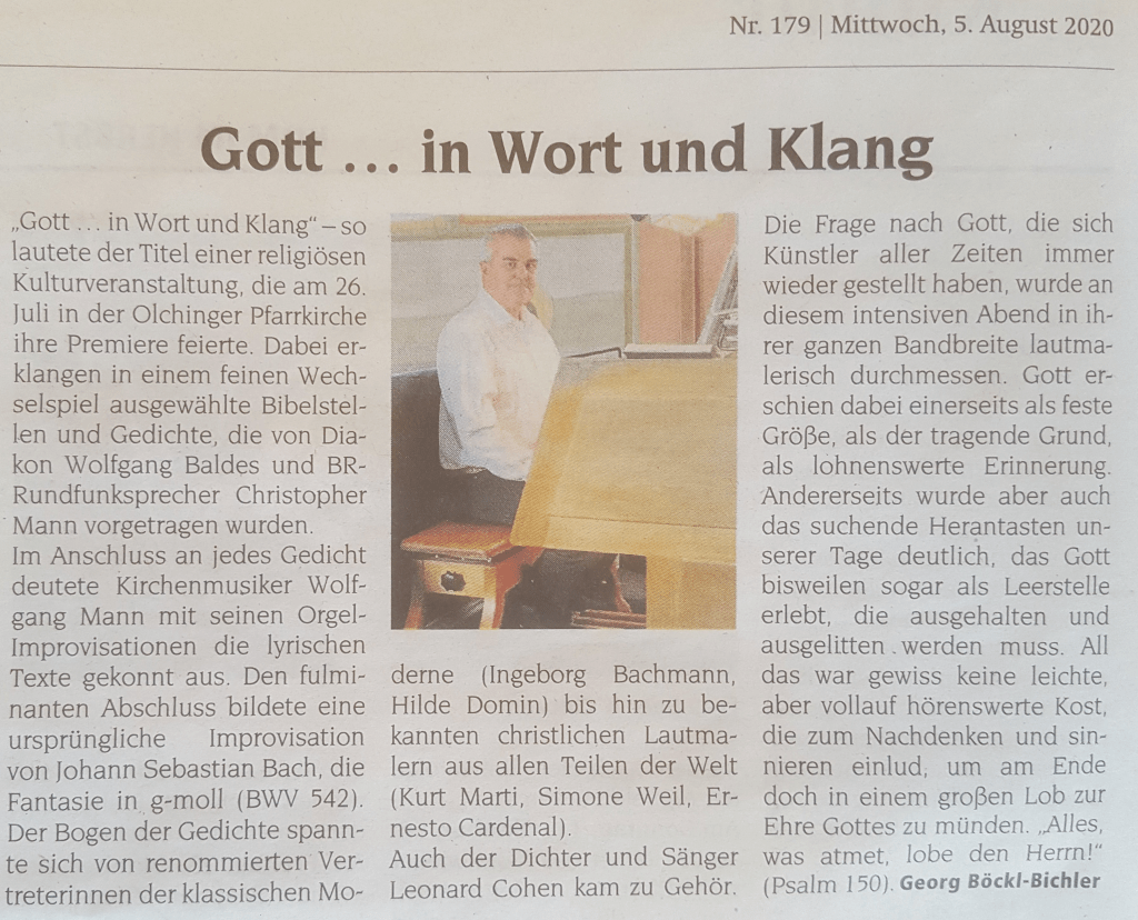 Hier ein Pressebericht über „Gott in Wort und Klang“ am 20.2.2022: